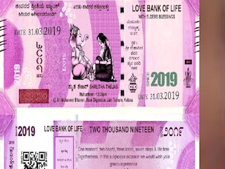 বিয়ের কার্ডটা দেখতে অবিকল ২০০০ টাকার নোটের মতোই। রিজার্ভ ব্যাঙ্ক অফ ইন্ডিয়ার জায়গায় লেখা ‘লাভ ব্যাঙ্ক অফ ইন্ডিয়া’। গভর্নরের স্বাক্ষরের জায়গায় লেখা হয়েছে বিয়ের লগ্ন। গান্ধীজির ছবির বদলে নবদম্পতিকে আশীর্বাদরত শ্রীগণেশের ছবি।