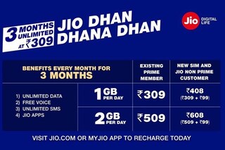 ৩০৯ টাকার সার্ভিস প্যাকে গ্রাহকরা পাবেন প্রতিদিন ১জিবি করে ৪জি ইন্টারনেট ডেটা অর্থাৎ মাসে ৩০জিবি ডেটা ৷ অন্যদিকে ৫০৯ টাকার রিচার্জ করলে পাওয়া যাবে প্রতিদিন ২জিবি করে ৪জি ডেটা, অর্থাৎ মাসে মোট ৬০ জিবি ডেটা ৷ এত কম টাকায় জিওর ধন ধনা ধন অফার সত্যি দারুণ খবর জিওর গ্রাহকদের জন্য ৷ কারণ যাঁরা ইতিমধ্যেই সামার সারপ্রাইজ অফার নিয়ে নিয়েছেন তাঁরা যেমন আগামী আরও তিন মাস জিওর সমস্ত ফ্রি অফার পাবেন ৷ পাশাপাশি যাঁরা নিজেদের সিম প্রাইমে আপ্রগেড সময়ের মধ্যে করে উঠতে পারেননি , তাঁদেরও এই ধন ধনা ধন অফারের জন্য আগামী জুন মাস পর্যন্ত জিও-র বিনামূল্যে ডেটা, কল এবং এসএমএস পরিষেবার সুবিধা নিতে আর কোনও সমস্যা থাকল না ৷