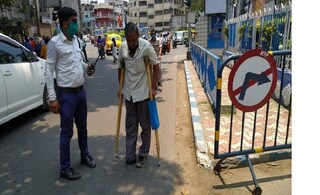 করোনা, লকডাউন, আনলক ওয়ান এই সময় পথে বেরিয়েছেন কেন? প্রদীপ গোস্বামীর উত্তর, "মাসে একটা দিন বাড়ি থেকে বেরিয়ে আসতেই হয়। নিউ আলিপুর ব্যাংক থেকে এই দিনটায় টাকা তুলি। ৪০০০ টাকা তুলি, এতেই সারা মাসের সংসার চলে। পা নেই, খুঁড়িয়ে এভাবে আসতে কষ্ট হয় কিন্তু কোনও উপায় নেই।"