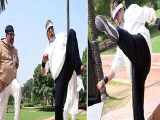 সাদা সোয়েট শার্ট, কালো জগার্স প্যান্ট, সাদা স্পোর্টস জুতো আর মাথায় সাদা ব্যান্ডে সকাল-সকাল বিগ বি মাতলেন শারীরিক কসরতে! যেন ফিটনেস আর এনার্জির সিলিন্ডার! তাঁর শূন্যে লাথি ছোড়া দেখলে কচিকাঁচাদেরও বুক দুরুদুরু করবে! যদিও বিগ বি নিয়মিত-ই কড়া ওয়ার্কআউটের মধ্যে থাকেন, তবু এদিনের স্টান্ট একটি বিশেষ কারণে! বিগ বি নিজেই জানিয়েছেন সে-কথা! ঠাট্টা করে লিখেছেন, '' টাইগার শ্রফ-এর চমকে দেওয়া স্টান্ট, শুন্যে লাথি ছোড়ার ছবি-ভিডিও কত-কত লাইক পায়! আমি ভাবলাম, দেখি একটু চেষ্টা করে! যদি একটু হলেও 'লাইক' পাই!'' সঙ্গে পোস্ট করেছেন কসরতের ৩টে ছবি, যা দেখে এটা বুঝতে বাকি থাকে না, তিনি 'স্টান্ট মাস্টার’ টাইগার শ্রফ-কেও বলে বলে গোল মারতে পারেন!