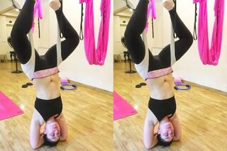 যদিও এই ছবি পুরনো। অর্থাৎ থ্রো-ব্যাক হিসেবেই তিনি এই ছবি পোস্ট করেছেন। যেখানে যোগ ব্যায়ামের ক্লাসে ঝুলন্ত যোগা হ্যামকের সাহায্যে নিখুঁত শীর্ষাসন করছেন করিনা। আর ছবিতে তাঁর সুগঠিত অ্যাবস ও মিড রিফ বেশ ভালোই বোঝা যাচ্ছে। করিনার পরনে রয়েছে কালো রঙের যোগ ব্যায়ামের পোশাক। রয়েছে হলটার নেক স্পোর্টস ব্রা এবং ম্যাচ করা যোগা প্যান্ট। ব্যায়াম করতে সুবিধে হবে বলেই টাইট করে চুল বেঁধে রেখেছেন বেবো, যাতে মুখের সামনে চুল না পড়ে।