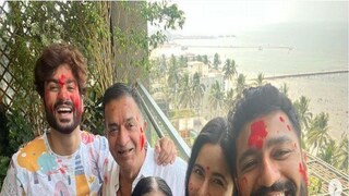 শ্বশুর-শাশুড়ি, বর আর ভিকির ভাই অভিনেতা সানি কৌশলের সঙ্গে 'পারফেক্ট ফ্যামিলি'-র দুটি ছবি 'টাইগার থ্রি' তারকা নিজেই পোস্ট করলেন ইনস্টাগ্রামে! ছবিতে দেখা যাচ্ছে সবার পরনেই হোলির ট্রেডমার্ক সাদা পোশাক, মুখে-মাথায় লাল আবির! ছবিটি সম্ভবত বাড়ির বারান্দায় তোলা (Katrina Kaif-Vicky Kaushal celebrate first Holi together after wedding)।