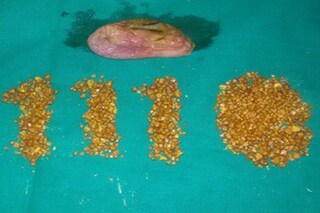কোমল বাজাজ ৷ বয়স ২৩ ৷ মাসখানেক আগে নিউ আলিপুর কলেজের তৃতীয় বর্ষের বি কম-এর ওই ছাত্রীর তলপেটে প্রবল ব্যথা শুরু হয়৷ যাদবপুরের একটি বেসরকারি হাসপাতালে ভর্তি করা হয় কোমলকে৷ পরীক্ষা-নিরীক্ষার পর গল ব্লাডারে স্টোন ও প্যানক্রিয়াটাইটিস ধরা পড়ে৷ এক সপ্তাহ চিকিত্সার পর পিজি-তে স্থানান্তরিত করা হয় কোমলকে৷ ভর্তি করা হয় উডবার্ন ওয়ার্ডের ১১বি নম্বর কেবিনে ডা. মাখনলাল সাহার অধীনে | সোমবার ল্যাপারোস্কোপিক কোলেভিসটেকটমি অস্ত্রোপচার হয়৷ ল্যাপারোস্কোপি পদ্ধতিতে গল ব্লাডার স্টোন অপারেশন খুবই সহজ গিয়ে গিয়েছে৷ কিন্তু, কোমলের ক্ষেত্রে সার্জেনরা সমস্যায় পড়েন৷ এক এক করে পিত্তথলি থেকে বেরিয়ে আসে ১১১০ টি পাথর৷ এত পাথর দেখে ডাক্তার ও রোগিণী সবাই চমকে যান৷ ছোট ফুটো দিয়ে এতগুলি পাথর সরাতে প্রাথমিকভাবে সমস্যায় পড়েন ডাক্তাররা৷ কিন্তু চিকিত্সক মাখনলাল সাহা ও তাঁর সহকারী চিকিত্সকরা মুন্সিয়ানার সঙ্গে অস্ত্রোপচারের কাজ শেষ করেন৷ বের করেন পাথর৷ কোমল এখন বিপন্মুক্ত৷ মাখনলাল সাহা জানান, ‘দু'মাস আগে এক মহিলার গল ব্লাডার থেকে অপারেশন করে ৩৬০ টি পাথর বের করেছিলাম৷ এবার সংখ্যাটা তিনগুণ হয়ে গেল৷ এত পাথর নজিরবিহীন ৷’ অস্ত্রোপচারের ক্ষেত্রে মাখনলালবাবুকে সাহায্য করেছেন ডা. সৌমেন দাস, ডা. প্রকাশ ভগত, ডা. চিরঞ্জীব ভট্টাচার্য৷ তাঁরাও পাথরের সংখ্যা দেখে চমকে গিয়েছেন৷ জানিয়েছেন, গল ব্লাডারে এত পাথর তাঁরা কখনও দেখেননি বা শোনেনওনি৷ এই অভূতপূর্ব ঘটনার শরিক হতে পেরে তাঁরাও খুশি৷