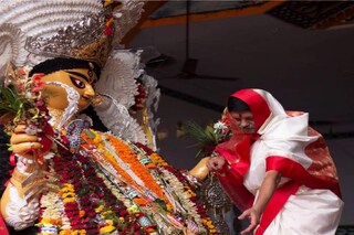 এই পুজোর বিশেষ বৈশিষ্ট্য দশমীর দিন ছেলেরা মেয়েদের মতো শাড়ি পরে এসে মাকে বরণ করেন। ছেলেদের মেয়ে সেজে আসা এই প্রথাকে দেখতে ভিড় জমান বহু মানুষ। কেন ছেলেরা মেয়ে সেজে এসে বরণ করেন মাকে তার পিছনে রয়েছে ইতিহাস।