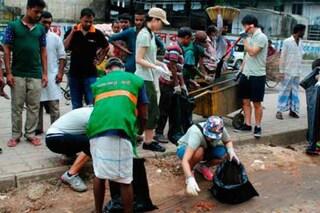 ঢাকা শহরের অভিজাত বনানী-গুলশান এলাকায় বিদেশিদের রাস্তা পরিষ্কার করার এই ছবি অনেকেই ফেসবুকে শেয়ার করেছেন। তাঁদের এই উদ্যোগে অনেক ক্ষেত্রে স্থানীয়রাও যোগ দিয়েছেন।
