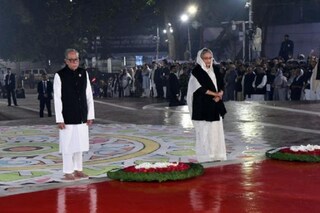 রাষ্ট্রপতি কেন্দ্রীয় শহীদ মিনারে পৌঁছালে প্রধানমন্ত্রী শেখ হাসিনা এবং ঢাকা বিশ্ববিদ্যালয়ের উপাচার্য মো. আখতারুজ্জামান তাঁকে স্বাগত জানান। রাত ১২টা ১টি মিনিটে প্রথমে রাষ্ট্রপতি মো. আবদুল হামিদ এবং তারপর প্রধানমন্ত্রী শেখ হাসিনা ভাষা শহিদ সালাম-বরকত-রফিকের রক্তে ভেজা ঢাকার কেন্দ্রীয় শহিদ মিনারে পুষ্পস্তবক অর্পণ করেন। ভেসে ওঠে অমর একুশের কালজয়ী গান ‘আমার ভাইয়ের রক্তে রাঙানো একুশে ফেব্রুয়ারি…’।