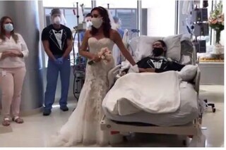 মুখে মাস্ক দু'জনেরই। যুবককে লাইফ সাপোর্ট দিয়ে রাখা হয়েছে। হাসপাতালের কয়েকজনকে নিয়েই তাঁরা বিয়ে সেরে ফেললেন। এই ঘটনাটি ঘটেছে টেক্সাসে। মহিলার নাম মিউনিজ। আর যুবকের নাম লেইম্যান। এই বিয়ের ভিডিও সোশ্যাল মিডিয়ায় শেয়ার হতেই বহু মানুষ দেখে ফেলেছেন। সকলেই প্রশংসা করেছেন ওই যুবক-যুবতীর। করোনার কঠিন পরিস্থিতিতে এভাবেই ভালবাসার গান গাওয়া যায়, তা এই নব দম্পতি প্রমান করেছেন।