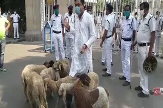 নিজাম প্যালেসের সামনের তৃণমূলের সেই বিক্ষোভের আঁচ পৌঁছয় রাজভবনেও। বেলা দেড়টার কিছু পরে রাজভবনের উত্তর গেটের সামনে বিক্ষোভ দেখাতে শুরু করেন একদল তৃণমূলকর্মী। লকডাউনের বিধি ভেঙেই শুরু হয় বিক্ষোভ। কয়েকজন তৃণমূলকর্মী রাজভবনের গেট বেয়ে ওপরে উঠে পড়েন। রাজভবনের গেটে বেঁধে দেওয়া হয় তৃণমূলের পতাকা। বিক্ষোভকারীদের দাবি, ‘রাজ্যপালই যত নষ্টের গোড়া। গ্রেফতার হওয়া তৃণমূলের মন্ত্রীদের সিবিআই যতক্ষণ না মুক্তি দেবেন ততক্ষণ চলবে বিক্ষোভ।’ তবে পরে তৃণমূলের তরফে অভিষেক বন্দ্যোপাধ্যায় ট্যুইট বিবৃতি দিয়ে কর্মী সমর্থকদের এই করোনা পরিস্থিতিতে রাস্তায় নেমে বিক্ষোভ না দেখানোর আর্জি জানান। কেন্দ্রীয় বাহিনী ও দলীয় নেতৃত্বের মধ্যস্থতায় এই বিক্ষোভ অনেকটাই স্থিমিত হয়। তবে আজ রাজভবনের সামনে ভেড়ার পাল নিয়ে এই অভিনব প্রতিবাদ নজর কেড়েছে নেটিজেনদের।