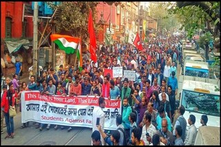 বদলাচ্ছে দিন, পাল্টাচ্ছে নেতৃত্ব ৷ পরিবর্তনের হাওয়া বাম শিবিরেও ৷ বলছেন বিশেষজ্ঞরা ৷ মাথায় রূপোলি টানের বদলে নেতৃত্বের ব্যাটন টগবগে ফুটন্ত তারুণ্যের হাতে ৷ এরকমই অসাধারণ নজিরবিহীন দৃশ্যের সাক্ষী রইল কলকাতা ৷ জেএনইউ-এর ঘটনার পর দেশের ছাত্র আন্দোলনের পোস্টার গার্ল এখন ঐশী ৷ সেই ঐশীর নেতৃত্বেই এদিন মিছিলে পায়ে পা মিলিয়ে হাঁটলেন রাজ্যের বাম নেতৃত্ব ৷ এমন ছবি আগে কখনও দেখা গিয়েছে বলে মনে পড়ে না ৷ এদিনের মিছিলে দেখা যায় সামনে জেএনইউ ছাত্র সংসদের সভাপতি সহ পড়ুয়ারা। মিছিলের একেবারে পিছনে হাঁটছেন বাম নেতারা। সঙ্গে সাংস্কৃতিক জগতের অনেক চেনা মুখ। সবাই জানিয়েছেন তারা এসেছিলেন ঐশীর জন্য ৷