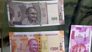 একশো টাকার নোট ছাড়া বাদবাকি অন্যান্য সংখ্যার নোটগুলো আকারে ছোট। কিন্তু রঙ ,নকশার হুবহু মিল রয়েছে। রিজার্ভ ব্যাংকের জায়গায় লেখা রয়েছে মনোরঞ্জন ব্যাংক।