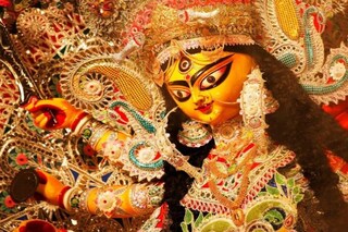 *ইস্টবেঙ্গল মোহনবাগানের জার্সি পরা খেলোয়াড়রা মাকে কাঁধে করে মণ্ডপে আনবেন।