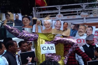#কলকাতা: ক্যাবের বিরোধিতা করতে রাবণ বধ করল ফরওয়ার্ড ব্লকের যুব সংগঠন যুবলীগ। শনিবার যোগাযোগ ভবনের সামনে CAA-র কপি পোড়াল সংগঠনের সদস্যরা। সেই সঙ্গে রাবণের মূর্তিও জ্বালানো হয়। রাবণের দশ মাথার জায়গায় বিজেপি নেতৃত্বের ছবি দিয়ে প্রতীকী রাবণ বানানো হয় ৷