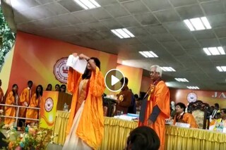 আন্তজার্তিক সম্পর্ক বিভাগে প্রথম স্থান অধিকার করেছেন দেবস্মিতা চৌধুরী ৷ মঙ্গলবার সমাবর্তন অনুষ্ঠানে স্বর্ণপদক ও শংসাপত্র হাতে নেওয়ার পর মঞ্চে দাঁড়িয়েই CAA-এর প্রতিলিপি ছিুঁড়ে ফেলেন তিনি ৷ তারপর ‘হাম কাগজ নেহি দিখায়েঙ্গে ইনকিলাব জিন্দাবাদ’ বলে স্লোগান দেন দেবস্মিতাও ৷ সোশ্যাল মিডিয়ায় ছড়িয়ে পড়েছে এই প্রতিবাদের ভিডিও ৷