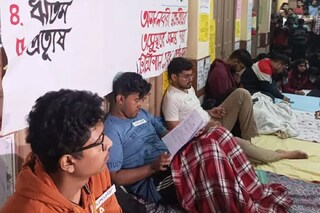পড়ুয়াদের দাবি, মেডিক্যাল কলেজের কর্তৃপক্ষের জন্য এই অবস্থা হয়েছে। অসুস্থ পড়ুয়া ঋতমের দাবি, আমাদের সহপাঠীরা অনশনে রয়েছেন। এই অবস্থায় আমি খাবার মুখে তুলতে পারব না। ইতিমধ্যে অধ্যক্ষের সঙ্গে দুই দফায় বৈঠক করেছেন মন্ত্রী চন্দ্রিমা ভট্টাচার্য। বাইরে স্লোগান দেন পড়ুয়ারা।