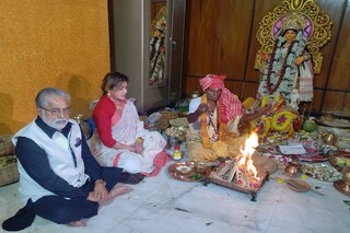 আগামী দিনে প্রধানমন্ত্রীর পদে মমতা বন্দ্যোপাধ্যায় যাতে বসতে পারেন, সেই প্রার্থনাও করেছেন বন্দ্যোপাধ্যায় দম্পতি। অবশ্য প্রতিবছরই ঘটা করে বাড়িতে লক্ষ্মী পুজোর আয়োজন করেন নয়না দেবী। কুমোরটুলি থেকে প্রতিমা আনা থেকে শুরু করে পুজোর খুঁটিনাটি-সমস্ত কিছুই একা হাতেই সামলান নয়না বন্দ্য়োপাধ্যায়। এবারও তার অন্যথা হয়নি।