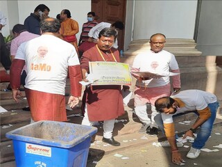 স্বচ্ছ ভারতের বার্তা নিয়ে সারা দেশেই সামাজিক আন্দোলন করে বিজেপি। ঘটা করে দিনক্ষণ ঘোষণা করে রাস্তা-ঘাট স্টেশন, পার্ক পরিষ্কার কর্মসূচি নেওয়া হয় দলের পক্ষ থেকে। বিভিন্ন সময় প্রধানমন্ত্রী নরেন্দ্র মোদীর সাফাই অভিযান ভাইরাল হয়েছিল। এই নিয়ে বিতর্কও কম হয়নি। তবে পরিচ্ছন্নতার বার্তা দিতে কখনো পিছুপা হয়নি বিজেপি। শুক্রবার দলীয় বিধায়কদের পদক্ষেপ এই কাজেরই অঙ্গ। তবে বিধানসভায় এমন ঘটনা সকলের প্রশংসা কুড়িয়েছে।
