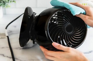 এ বার তুলো বা কাপড়ের সাহায্যে পাখা ও ফ্যানের জাল পরিষ্কার করতে হবে।