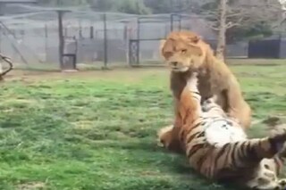 এই মুহূর্তে নেট দুনিয়ায় ভাইরাল বাঘ-সিংহের তুমুল লড়াইয়ের একটি ভিডিও। ভিডিওতে দেখা যাচ্ছে, আরামে রোদ পোহাচ্ছে একটি বাঘ। আচমকাই একটি বিশালাকার সিংহ বাঘটির উপর ঝাঁপিয়ে পড়ে... শুরু তুমুল লড়াই... এ ওকে থাবা মারে, তো ও একে...কিন্তু শেষমেশ বাঘের কাছে পেড়ে উঠল না সিংহ, হার স্বীকার করতে হল বাঘের কাছে!