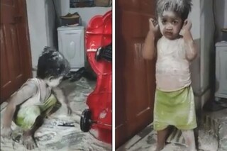 সেই শিশু সারা ঘরে আটা ছড়িয়েছে । তাই বাবার সামনে শাস্তি পেতে হচ্ছে তাকে । কান ধরে বলতে হয়েছে, যে সে ঠিক কাজ করেনি । কিন্তু বুদ্ধিমান শিশু নিজের একার ঘাড়ে সমস্ত দোষ নেয়নি । কখনও বাবা, কখনও জনৈক গুন্ডা কাকার উপর দোষ চাপিয়েছে । শেষে ক্যামেরার পিছনে থাকা তার বাবাও হেসে ফেলতে বাধ্য হয়েছেন । তবে শেষে কিন্তু প্রধানমন্ত্রীর সতর্কবাণী মনে করাতে ভোলেনি সেই পুঁচকে । সকলকে বাড়িতে থাকতে বলেছে । রোজ বারবার হাত ধুতেও পরামর্শ দিয়েছে ।