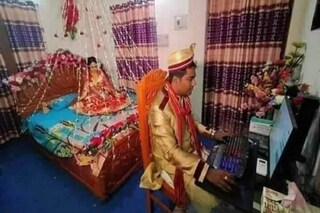 ফুলশয্যার খাটে অপেক্ষা করছে নববধূ, বরবেশে স্বামী মগ্ন কম্পিউটারে! তুমুল ভাইরাল ছবি