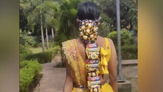 সেই ধারায় গা ভাসিয়ে অভিনব সাজে চুল বেঁধেছেন এক তরুণী। ফুল বা চুলের চেনা অলঙ্কার নয়, তাঁর লম্বা বিনুনির সজ্জা চকোলেট ও টফি। নাম না জানা ওই তরুণীর ছবি শেয়ার করেছেন চিত্রা নামে এক মেকআপ শিল্পী। সেখানে দেখা যাচ্ছে কনের চুল সাজানো হয়েছে কিটক্যাট, ৫ স্টার, মিল্কিবার, ফেরেরো রশার-সহ চকোলেটের নানা ব্র্যান্ডের মোড়কে। তাঁর হলুদ পোশাকের সঙ্গে মানানসই খোঁপা ও কানের দুলে ছিল ম্যাঙ্গো বাইট লজেন্সের মোড়ক। সিঁথিপাটি, মাঙ্গটিকা বা টিকলি এবং নেকলেসের পরিবর্তেও ছিল লজেন্স ও চকোলেটের বাহার।