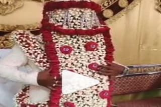 সাধারণত অবাঙালি বিয়েতে বর শেরওয়ানি পরেন৷ এমনই রীতি৷ এর সঙ্গে মাথায় পরেন এক ধরণের মুকুট যাকে শেরা বলে৷ এই শেরায় মাথা থেকে বুক পর্যন্ত ঢাকা থাকে বরের৷ মূলত ফুলের মালা দিয়ে এই শেরা তৈরি হয়৷ কখনও গোলাপের সঙ্গে রজনীগন্ধা বা জুঁই দিয়ে তৈরি হয় এই শেরা৷ ঘোরার পিঠে চেপে শেরওয়ানি আর শেরা পরে বর আসেন বিয়ের আসরে৷ তবে যে ভিডিওটি ভাইরাল হয়েছে সেখানে বরের শেরা দেখেই সকলে অবাক (Groom Video Viral)!