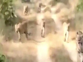পিছনের জাঙ্গলসাফারির জিপটি দেখে একটি বাঘ চলে গেল দল ছেড়ে৷ ঢুকে পড়ল বনের মধ্যে৷ বাকি পাঁচ জন অবশ্য ওই পথেই এগিয়ে চলল৷ দু’টি জিপ এ বার ধীরে ধীরে এগোতে লাগল৷ মাঝে বাঘের দলের গতিও মন্থর৷ তারাও যেন জরিপ করছে অভয়ারণ্যে আসা দু’ পেয়েদের! দলের প্রধান বাঘটি তো বেশ এগিয়ে এল জিপের দিকে৷ তার পর থেমে গেল৷ শার্দূলবাহিনীকে ওই অবস্থায় রেখেই জিপ এগোতে থাকল৷ ভিডিয়ো শেষ এখানেই৷