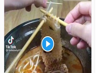 চপস্টিক ব্যবহার করে সেদ্ধ করা নুডলস দিয়ে স্কার্ফ তৈরি করে সেই মহিলা সকলকে বেশ অবাক করে দিয়েছেন। খাওয়ার জিনিস না খেয়ে তা সেলাইয়ের কাজে ব্যবহার করার ভিডিও দেখে সোশ্যাল মিডিয়ায় সকলেই অবাক হয়েছে। এর ফলে সকলেই ব্যাপক হারে শেয়ার করে চলেছে সেই ভিডিও।