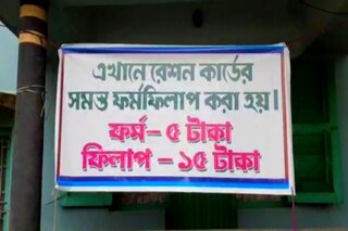 এখন এই চিত্রই নজরে পড়বে বারুইপুর ফুলতলা, পিয়ালী টাউন সংলগ্ন মহকুমা ও ব্লক খাদ্য দপ্তরের এর অফিসে যাবার রাস্তায়। এমনকি বারুইপুর ব্লক অফিসও এই ক্যাম্পের কাছেই। প্রশ্ন উঠেছে কিভাবে প্রশাসনের নজর এড়িয়ে, ক্যাম্প করে অর্থের বিনিময়ে রেশন কার্ডের বিভিন্ন ফর্ম ফিলাপ করা হচ্ছে ?
