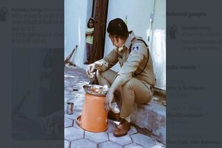 তেমনই এক ছবি ভাইরাল হল সোশ্যাল মিডিয়ায়। ইন্দৌরের এক পুলিশকর্মী নির্মল শ্রীনিবাস । বাড়ি ফিরেও সোশ্যাল ডিসট্যান্সিং মেনে চলছেন তিনি । বাড়ি ফিরেও বাড়ির বাইরে বসে বালতির উপর থালা রেখে খাবার খাচ্ছেন তিনি । দূরে দাঁড়িয়ে রয়েছে ছোট্ট মেয়ে । কিন্তু পরিবারের স্বার্থেই তাঁদের ধারেকাছেও ঘেঁষছেন না ওই পুলিশ আধিকারিক।