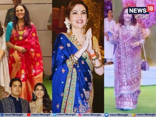 অনন্ত-রাধিকার মেহেন্দির অনুষ্ঠানে হাজির হয়েছিলেন আকাশ আম্বানির স্ত্রী শ্লোকা মেহতা আম্বানির মা মোনা মেহতা এবং আর ইশা আম্বানির স্বামী আনন্দ পিরামলের মা স্বাতী পিরামল। এই অনুষ্ঠানের জন্য মোনা বেছে নিয়েছিলেন একটি লাল রঙের শাড়ি। অনবদ্য রূপে ধরা দিলেন তিনি। অন্যদিকে সিক্যুইনড মভ-কালার্ড শাড়িতে দুর্দান্ত লুকে নজর কাড়লেন স্বাতী পিরামল।