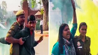 এদিকে, সংসদের অন্দরে যখন এই ঘটনা ঘটছে, ঠিক সেই সময়ই বাইরে সংসদ ভবন চত্বরের পরিবহণ দফতরের বাইরে হলুদ ধোঁয়া উড়িয়ে বিক্ষোভ দেখাতে দেখা যায় এক মহিলা ও এক তরুণকে৷ তাঁদেরও সেই সময় গ্রেফতার করে পুলিশ৷
