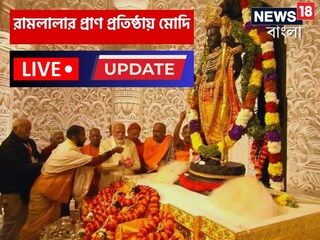 অযোধ্যা: অযোধ্যায় রামলালার প্রাণ প্রতিষ্ঠা প্রধানমন্ত্রী নরেন্দ্র মোদির ৷ প্রাণ প্রতিষ্ঠার পুজোয় প্রধানমন্ত্রী-সহ ৫ জন ৷ গর্ভগৃহে রয়েছেন উত্তর প্রদেশের মুখ্যমন্ত্রী যোগী আদিত্যনাথ ৷ রামলালার প্রাণ প্রতিষ্ঠায় রয়েছেন সংঘ প্রধান মোহন ভাগবত এবং রাম মন্দিরের প্রধান পুরোহিত সত্যেন্দ্র দাস ৷ রয়েছেন উত্তর প্রদেশের রাজ্যপাল আনন্দীবেন প্যাটেলও ৷ প্রচুর মানুষের আগমন এদিন অযোধ্যায়। রয়েছেন প্রচুর ভিভিআইপিরাও। প্রাণ প্রতিষ্ঠার পর পুষ্পাঞ্জলি প্রধানমন্ত্রীর ৷