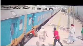 ওই ব্যক্তি চলন্ত ট্রেনে পা দিয়ে তো ফেলেন। কিন্তু পা ফসকে পড়ে যান। এক হাতে ধরে থাকেন ট্রেনের হাতল। গোটা স্টেশনে ওই ব্যক্তিকে টানতে টানতে চলতে থাকে ট্রেন। এই অবস্থায় ব্যক্তিকে দেখে ফেলেন (Viral Video) স্টেশনে ডিউটিরত হেড কন্সটেবল রঘুবীর সিং। তিনি ছুটতে থাকেন ট্রেনের পিছনে। ওই ব্যক্তিকে বাঁচানোর জন্য। গোটা ঘটনা ততক্ষণে দেখে ফেলেন ট্রেনের চালক। আস্তে করা হয় ট্রেন। ছুটে গিয়ে কোনও রকমে ট্রেনে তলায় পড়ে যাওয়া থেকে ওই ব্যক্তিকে বাঁচিয়ে নেন রঘুবীর।