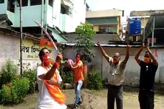 যজ্ঞানুষ্ঠানের পর তরোয়াল নিয়ে খেলা দেখালেন বিজেপি জেলা সভাপতি বিশ্বজিৎ লাহিড়ি। রায়গঞ্জ সহ এরাজ্যে পূর্ণ লকডাউন চললেও ৫০০ বছরের ইতিহাসকে প্রতিষ্ঠা করতে এবং হিন্দু ধর্মের ঐতিহ্যকে বজায় রাখতে সামাজিক দূরত্ব বিধি বজায় রেখে এই অনুষ্ঠানের আয়োজন করা হয়েছে বলে জানালেন বিজেপির উত্তর দিনাজপুর জেলা সভাপতি বিশ্বজিৎ লাহিড়ি। যজ্ঞানুষ্ঠান ও পূজোপাঠ উপলক্ষে বিজেপির জেলা কার্যালয়ে ভোগ ব্যাঞ্জনের ব্যাবস্থাও করা হয়।