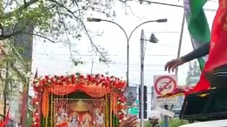 শ্রী রামের ছবি আঁকা বড় বড় পতাকা নিয়ে চলছে মিছিল। পা মিলিয়েছেন আট থেকে আশি সব বয়সীরাই। শহরের প্রধান রাস্তাজুড়ে মিছিলের সমারোহ! বাজছে ডিজে! শ্রী রামের গান! গানের তালে নাচে কোমর দোলাচ্ছেন সকলেই। সঙ্গে আবার একাধিক জায়গায় চলল লাঠি খেলা।