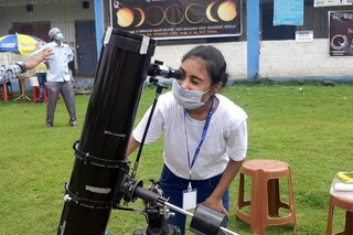 শিলিগুড়িতে দুটি জায়গায় মহাজাগতিক দৃশ্য দেখার আয়োজন করা হয়। একে করোনা আবহ চলছে। তবুও কোভিড প্রোটোকল মেনেই বলয়গ্রাস সূর্যগ্রহণ দেখতে ভিড় জমে। তবে আবহাওয়ার খামখেয়ালিপনা ছিল সঙ্গী। কখনও রোদ, আবার কখনও মুষলধারায় বৃষ্টি। আবার মেঘের ঘনঘটা সরিয়ে রোদ ঝলমলে আকাশ। এমন আবহাওয়াতেই বিরলতম দৃশ্য উপভোগ করলেন শহরবাসী। শিলিগুড়ির মাটিগাড়ার সায়েন্স সেন্টারে গ্রহণ দেখার যাবতীয় আয়োজন করা হয়েছিল। সেখানেও সকাল থেকে ভিড় জমায় স্কুল, কলেজের পড়ুয়ারা। টেলিস্কোপে চোখ রেখে তাঁরা দেখে নয়নাভিরাম মহাজাগতিক দৃশ্য!