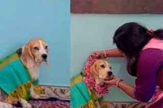 ভিডিওটিতে আর এক জিনিস দেখার মতো সেটা হল কুকুরটি কতটা ধৈর্য সহকারে অনুষ্ঠানটি উপভোগ করছিল। ডিম এবং মাংসের হাড় সমেত কুকুরের কিছু প্রিয় খাবার তার সামনে থালা ভর্তি করে সাজানো ছিল, সঙ্গে ছিল কিছু ফল এবং মিষ্টি।