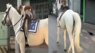 ট্যুইটারে (Twitter) শেয়ার করা ছোট ক্লিপটিতে দেখা যাচ্ছে, সাদা রঙের একটি ঘোড়া রাস্তায় দৌড়চ্ছে। তার পিঠে চড়ে রয়েছে একটি কুকুর। যেখানে কোনও মানুষ বসে থাকার কথা, ঘোড়ার পিঠের সেই জায়গায় কুকুরটি দাঁড়িয়ে রয়েছে। ঘোড়ার পিঠে চড়ে সে তো খুশিতে ডগমগ। ঘোড়াটি সারা শহর জুড়ে ঘুরে বেড়াচ্ছে, কুকুরটিও তার পিঠে চড়ে তার সহযাত্রীর ভূমিকায় রয়েছে। যেন মনে হচ্ছে ঘোড়ার লাগাম রয়েছে কুকুরের কাছে। একটি ট্রাফিক সিগন্যালেও ঘোড়াটিকে একবার থামতে দেখা গিয়েছে ভিডিওতে।