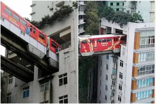 অনেকে বলে থাকেন বাড়ির কাছে মেট্রো হলে কী ভালো হত। কিন্তু এই বাড়ির বাসিন্দাদের বাড়িতেই মেট্রো। একটা ১৯ তলা বাড়ি। তারই একটা উচ্চতায় বড় গর্ত করা। যার মধ্যে দিয়ে প্রবল গতিতে ছুটে আসা মেট্রো রেল ঢুকে যাচ্ছে। দেখে মনে হবে একটা মেট্রো রেল ওই বাড়ির পেটের মধ্যে প্রবেশ করছে। সত্যিই করছেও তা। তবে এই বাড়িটি ভারতে নয়। এটি চিনের ঘটনা।চিনের চংকুইং শহরে রয়েছে এমন স্টেশন। ১৯ তলা বাড়ির পেটে অর্থাৎ মাঝের অংশ মেট্রো স্টেশন।
