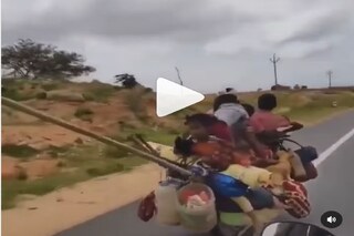 বাইকচালকের সামনে দুইটি শিশু বসে। আর মহিলার পিছনে বাইকে বসে তিনজন শিশু! সবার বয়স ৫ থেকে ১০-এর মধ্যেই। তবে মজার বিষয় হল এই বাইকে চারিদিকে নানা জিনিসপত্র দড়ি দিয়ে বাঁধা! এছাড়াও এই বাইকেই কাপড়ে করে বাঁধা এক ছোট্ট কুকুর ছানা! সেও দিব্যি যাচ্ছে বাইকে। আবার একটি বাচ্চার কোলে রয়েছে আরও একটি কুকুর! এবং আর এক বাচ্চার কোলে একটি মুরগি!