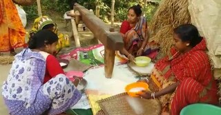 এদিন গ্রামে ঘুরতে ঘুরতে দেখা গেল সেই ছবি, যেখানে রাস্তার পাশে একটি খামারে কাঠের ঢেঁকিতে চাল ঢেলে রাখা। ঢেঁকিতে এক নাগাড়ে পা দিয়ে চলছেন এক ব্যক্তি। আর মহিলারা চাল গুড়ি তুলে নিচ্ছেন সেখান থেকে। এভাবেই যেনো ঢেঁকির শব্দের তালের সঙ্গে মেতে উঠেছেন সকলে। (East Bardhaman News)