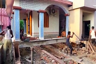 এরপর ওই কোম্পানির লোক এসে দেখে যায় । গত ১৫ দিন আগে থেকে কাজ শুরু করে ওই সংস্থার।চুক্তি হিসেবে ৪৫০ টাকা স্কয়ার ফুট হিসেবে কাজ হচ্ছে বলে জানা যায়। বাড়িটি এক হাজার স্কয়ার ফুট রয়েছে।সাড়ে চার লক্ষ টাকায় কাজ মিটছে। বাড়িটি নতুন করে তৈরি করতে হচ্ছে না। আবার তা ঘুরিয়ে মন্দির নিয়ে যাওয়া হচ্ছে ঈশান কোণে। এই কাজ করছেন প্রায় ১৫ জন শ্রমিক। এই শ্রমিকদের প্রত্যেকেই বাড়ি বাইরে।আর এই কাজ দেখতে ভিড় জমিয়েছেন এলাকার মানুষ। তারা জানাচ্ছেন ইউটিউবে এতদিন তারা দেখেছেন স্বচক্ষে দেখে অনেক আশ্চর্য হচ্ছেন।