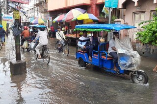 জমা জলে নর্দমা, রাস্তা কিছুই আলাদা করা যাচ্ছে না। তার ওপর দিয়েই কোনও রকমে সাইকেল, মোটর সাইকেল, টোটো যাতায়াত করছে। এমনিতেই শহরের রাস্তার হাল বেহাল। তার ওপর জমা জল দুর্ভোগ আরও বাড়িয়ে তুলেছে।