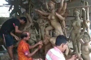 মৃৎশিল্পী অশোক সূত্রধর, গৌড় সূত্রধর ও নিতাই সূত্রধর বলেন, করোনার ফলে এই বছর তেমন কাজ নেই। মানুষের মধ্যে দেখা দিয়েছে অর্থসংকট। ফলে আগের তুলনায় কাজ অনেক কম রয়েছে। অন্য বছর প্রায় ৬০ টির উপর প্রতিমা বানানোর কাজ করেছি। এবছর তা কমে ৪৫ টি। তার ওপর আবার আগের বছরের তুলনায় এই বছর দামের পার্থক্য অনেক। আগের বছর যে সমস্ত মন্দির বা প্যান্ডেলে প্রতিমার দাম ছিল ১৭ হাজার থেকে শুরু করে ২৫ হাজার টাকা। এবছর তা নেমে এসেছে ৬ থেকে ৭ হাজার টাকায়। আগের তুলনায় প্রতিমা এবছর অনেক ছোট হচ্ছে। পুজোয় নেই কোনও জৌলুস। শুধুমাত্র নিয়ম রক্ষার জন্য ছোট মূর্তি বানিয়ে সমস্ত পুজো কমিটি এই বছরের পুজো সারতে চাইছেন। দুর্গা পুজোর সময় আমাদের সারা বছরের খরচ উঠে আসতো। কিন্তু এবছর অর্ধেকেরও নিচে নেমে গেছে আয়। ফলে কীভাবে চলবে সেই নিয়ে চিন্তায় পড়তে হচ্ছে আমাদের। এটাই আমাদের মূল পেশা। তাই এই বছর যা অবস্থা তাতে প্রতিমা করার পাশাপাশি অন্যান্য কাজের সন্ধান করতে হবে আমাদের। মহালয়া পেরিয়ে দেবীপক্ষের সূচনাও হয়ে গেল। কিন্তু এখনও পর্যন্ত সমস্ত পুজো কমিটির পক্ষ থেকে আসেনি মূর্তি গড়ার বায়না। এর পরবর্তী পুজোতেও যদি একই অবস্থা হয় তাহলে বেশ সমস্যার সম্মুখীন হতে হবে আমাদের৷ দুঃখের সঙ্গে বলছেন প্রতিমা শিল্পীরা৷