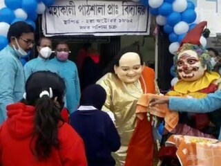 করোনার আবহে দীর্ঘ ২বছর বন্ধ থাকার পর রাজ্য সরকারের নির্দেশে বুধবার থেকে খুলে গেল সমস্ত প্রাথমিক বিদ্যালয়। আর দীর্ঘদিন পর স্কুল খোলার প্রথম দিনেই ছাত্রীদের উৎসাহিত করতে অভিনব উদ্যোগ নিল বহরমপুর মহাকালী পাঠশালা প্রাথমিক বিদ্যালয়। ছোট ছোট পড়ুয়াদের অভ্যর্থনা জানাতে স্কুলে এল গোপাল ভাঁড়। চকোলেটের সঙ্গে উপহারও তুলে দিল ছাত্রীদের হাতে।