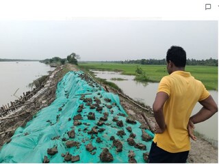 অন্যদিকে, পূর্ণিমার কোটালে হঠাৎই নামখানার মৌসুনি দ্বীপের পয়লাঘেরিতে নদী বাঁধে ধস নামে। স্থানীয় সূত্রে জানা গিয়েছে, পয়লাঘেরিতে চিনাই নদীর বাঁধে প্রায় ১০০ ফুট ধস নেমেছে। তবে এখনও পর্যন্ত নদী বাঁধ ভেঙে বা ছাপিয়ে গ্রামে নোনা জল ঢোকেনি।