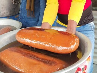 ছানা, চালের গুঁড়ো দিয়ে কড়া পাকের এই মিষ্টি তৈরিতে ঘণ্টা দেড়েক সময় লাগে। একা একটা গোটা মিষ্টি খাওয়া কার্যত অসম্ভব। তবে অনেকের সঙ্গে ভাগ করে খাওয়ার খদ্দেরের অভাব নেই।
