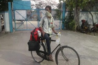 লকডাউনের জেরে বাড়িতে আটকে পড়েছিলেন তিনি। বাড়ি থেকে ফিরতে পারছিলেন না কাজের জায়গায়। তাই প্রায় একশো কুড়ি কিলোমিটার সাইকেল চালিয়ে কালনা দক্ষিণবঙ্গ রাষ্ট্রীয় পরিবহণ সংস্থার বাস স্ট্যান্ডে পৌঁছালেন মুর্শিদাবাদ জেলার সালারের মাতোয়ার এলাকার বাসিন্দা জ্যোতির্ময় ঘোষ। পূর্ব বর্ধমানের কালনার বাস ডিপোতে এক বেসরকারি সংস্থার অধীনে সিকিউরিটি গার্ডের চাকরি করেন জ্যোতির্ময় বাবু। লকডাউন শুরু হওয়ার আগের দিন বাড়িতে গিয়ে আটকে পড়েছিলেন তিনি। লকডাউন ফের দীর্ঘায়িত হওয়ার পর তিনি সিদ্ধান্ত নেন সাইকেল করে গিয়ে যোগ দেবেন কাজে। সেই মতো শুক্রবার ভোর পাঁচটা নাগাদ সাইকেল নিয়ে বেরিয়ে সন্ধে ছ’টা নাগাদ কালনার বাস ডিপোতে এসে পৌঁছান তিনি।