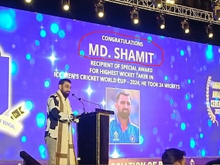 শনিবার মহম্মদ শামিকে সম্বর্ধনা দিতে গিয়ে সিএবি যে কাণ্ডটা করল, তাতে হাসাহাসি পড়ে গেল। মহম্মদ শামির নামের বানানটাই ভুল! মঞ্চে সেই ভুল বানান জ্বলজ্বল করল! নিজের নামের ভুল বানানের সামনে দাঁড়িয়ে বক্তৃতা দিলেন শামি।